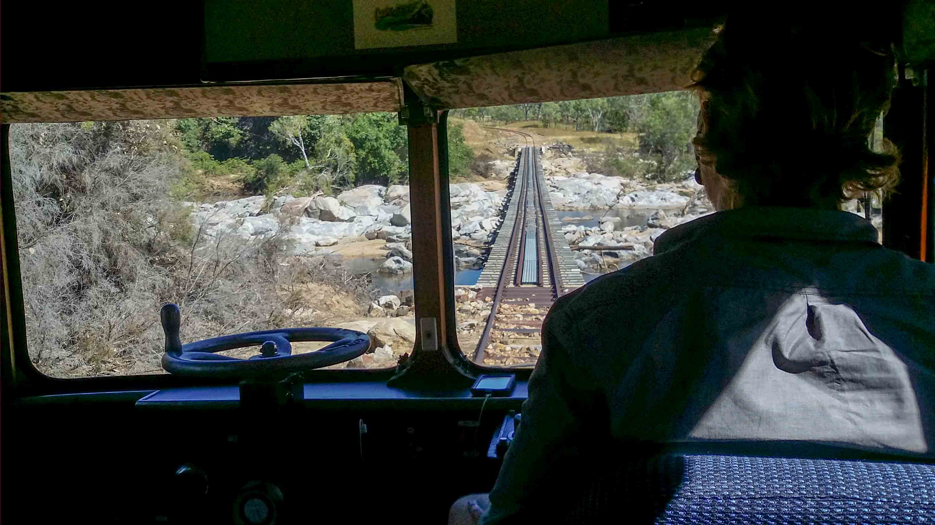 Later that day we piled into the Savannahlander, heading for Einasleigh, where we would take a look at the nearby Copperfield gorge. The Savannahlander actually operates from Cairns to Forsayth, going up the track we went down in the Kuranda scenic railway stage of our journey, Our driver/host, Will, explained that the trip was less comfortable than usual because the train usually has three carriages, which gives it more stability, but the carriages were stuck at Forsayth.